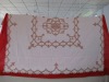 The product showed on the picture is made with 100% linen material. The laces are made with 80/6 thread by hand. The product is very popular in European markets, especialy in Italy,Greece and Belgium. As usual,we sell it together with tablecloth and bedsheet as one -3pc.set or tris.